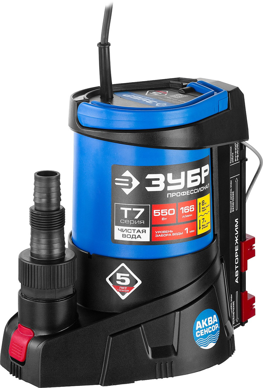 ЗУБР АкваСенсор 550 Вт, Дренажный насос с минимальным уровнем откачки, Профессионал (НПЧ-Т7-550)