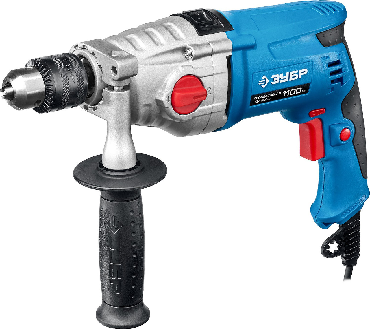 ЗУБР 1100 Вт, 13 мм, 2 скорости, ударная дрель, мет. корпус, Профессионал (ЗДУ-1100-2 ЭРМКМ2)